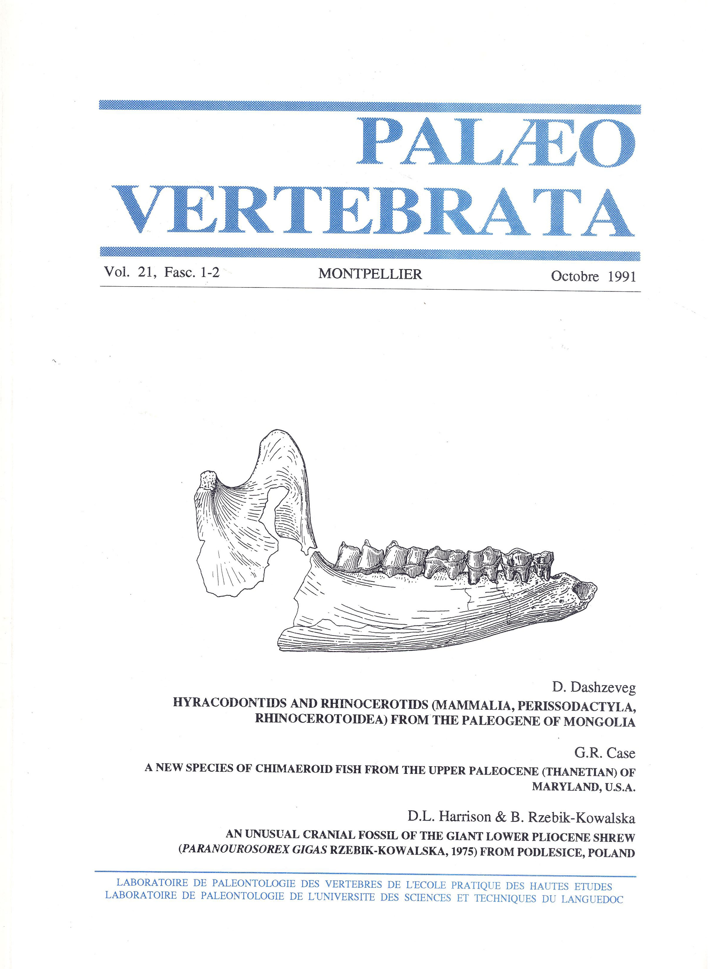 PalaeovertebrataVol. 21, Fasc. 1-2:95-102. 1991