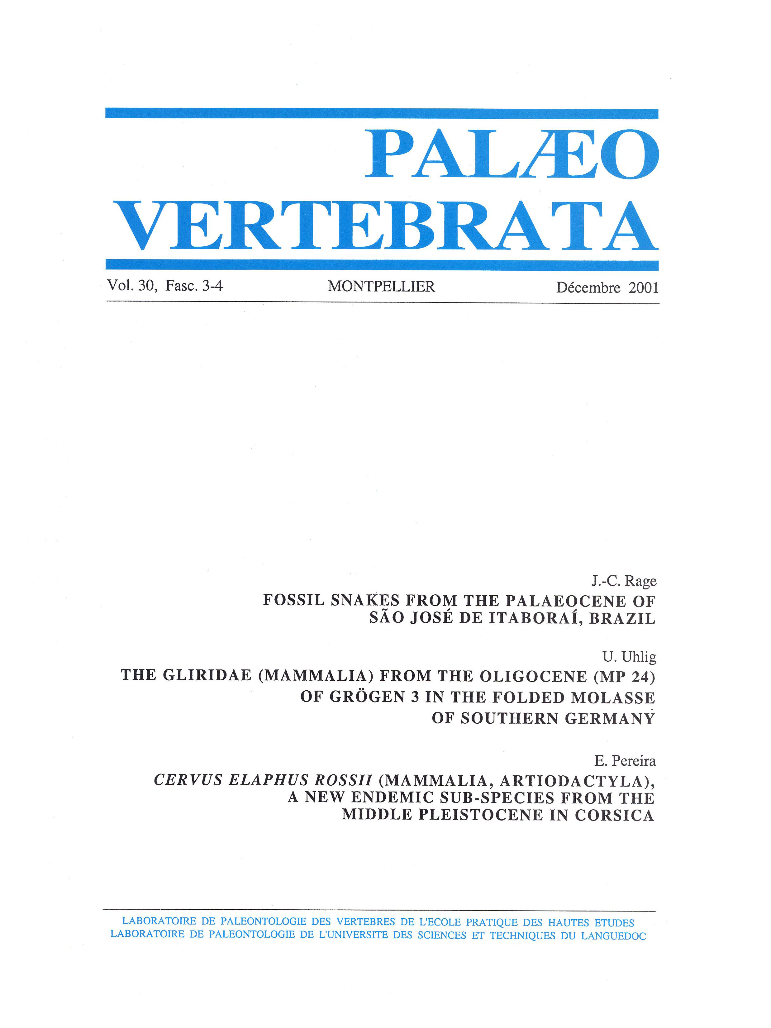 Palaeovertebrata Vol. 30, Fasc. 3-4:December 2001