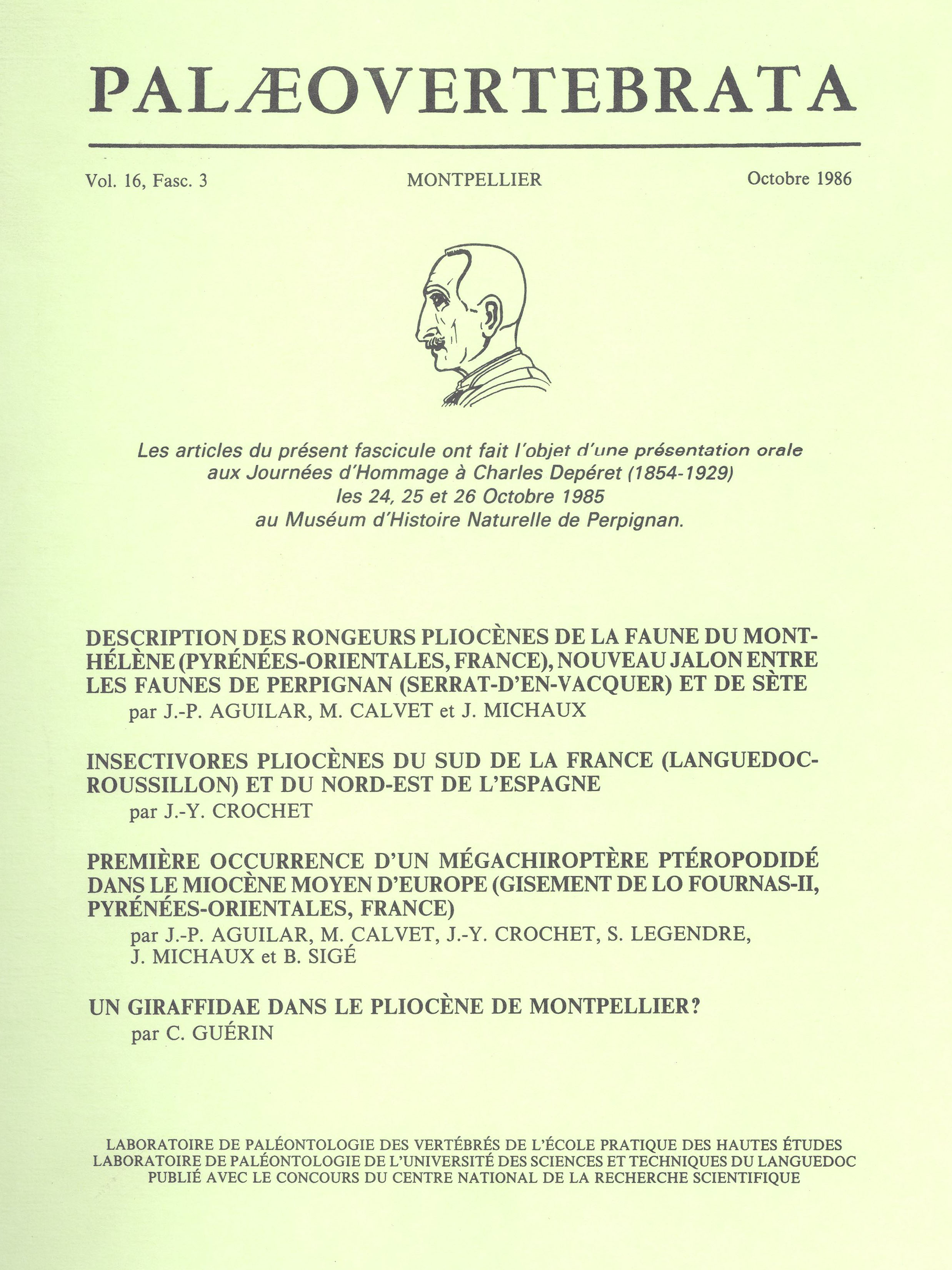 Palaeovertebrata Vol. 16, Fasc. 3:October 1986