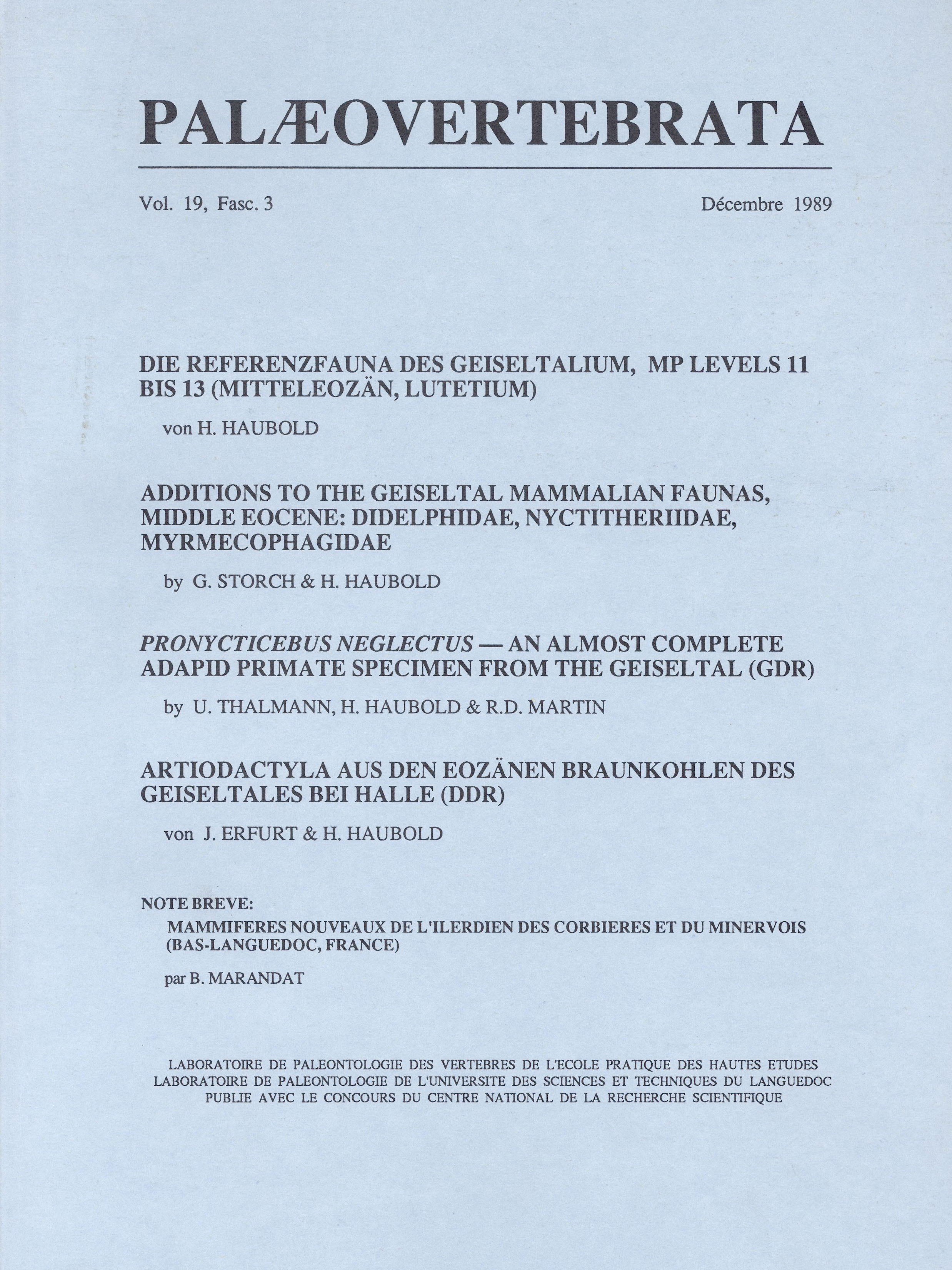 Palaeovertebrata Vol. 19, Fasc. 3:December 1989