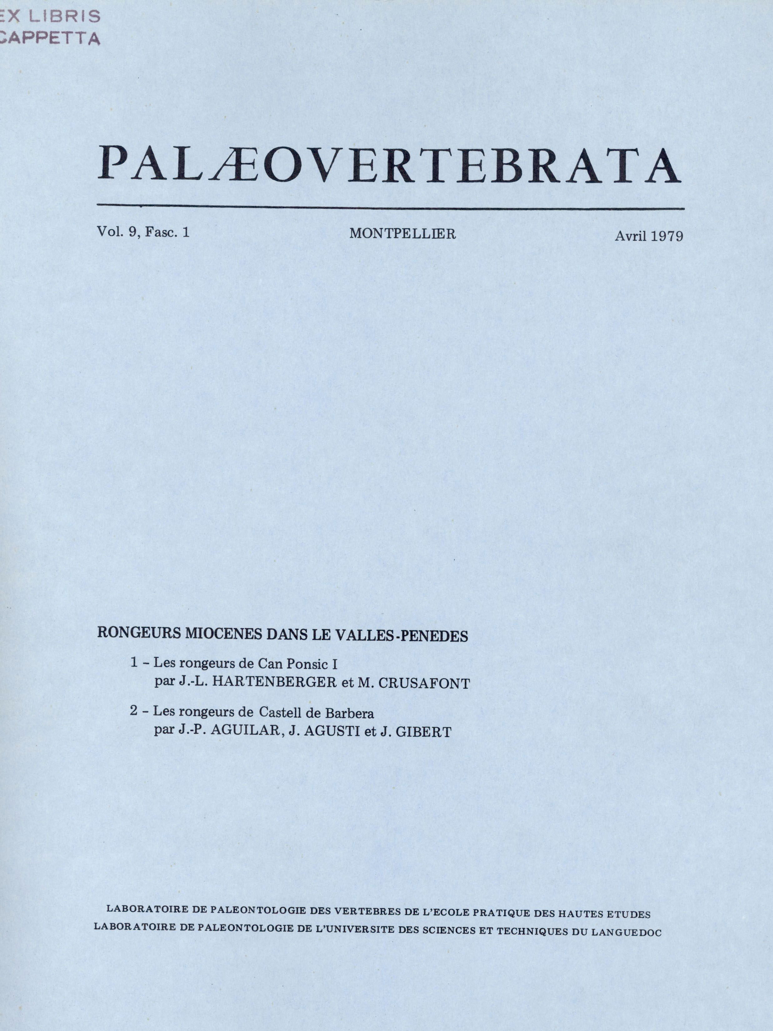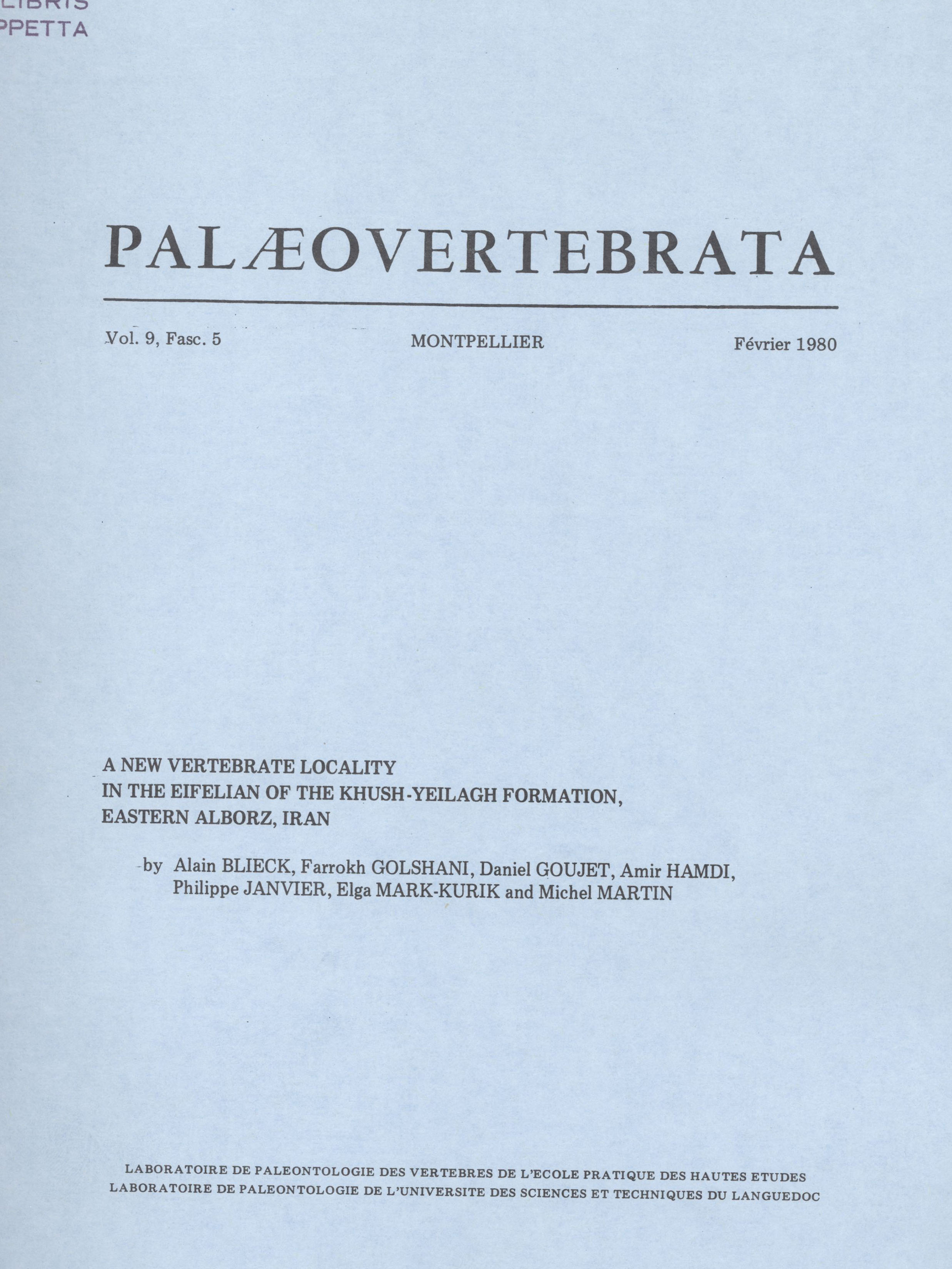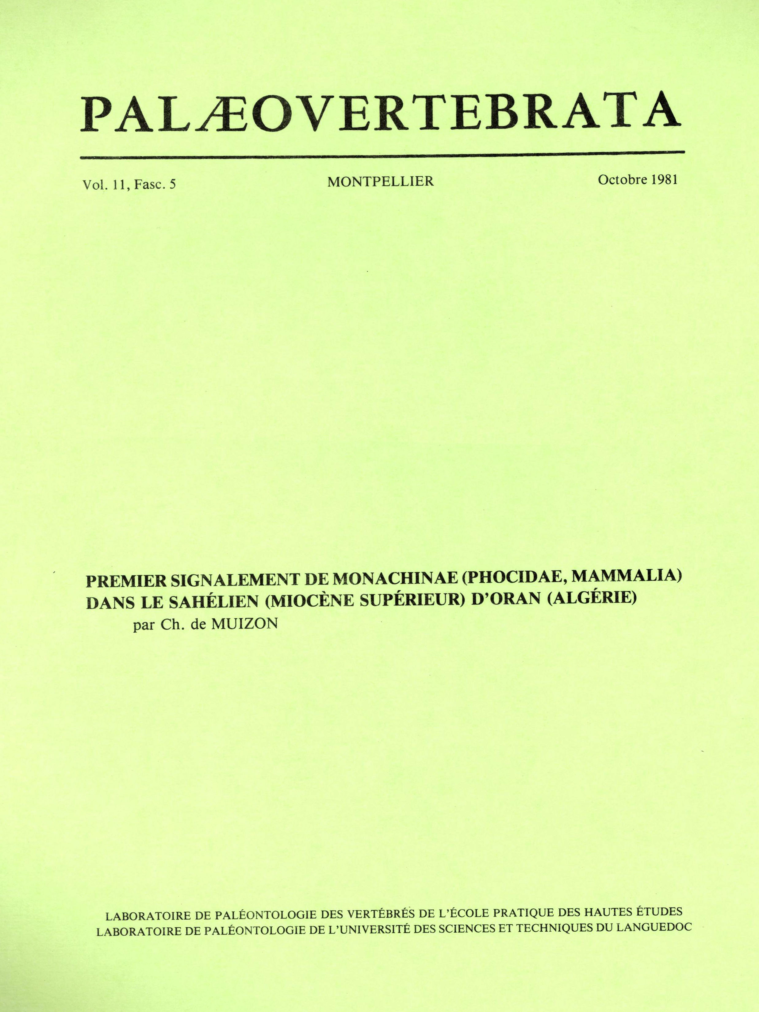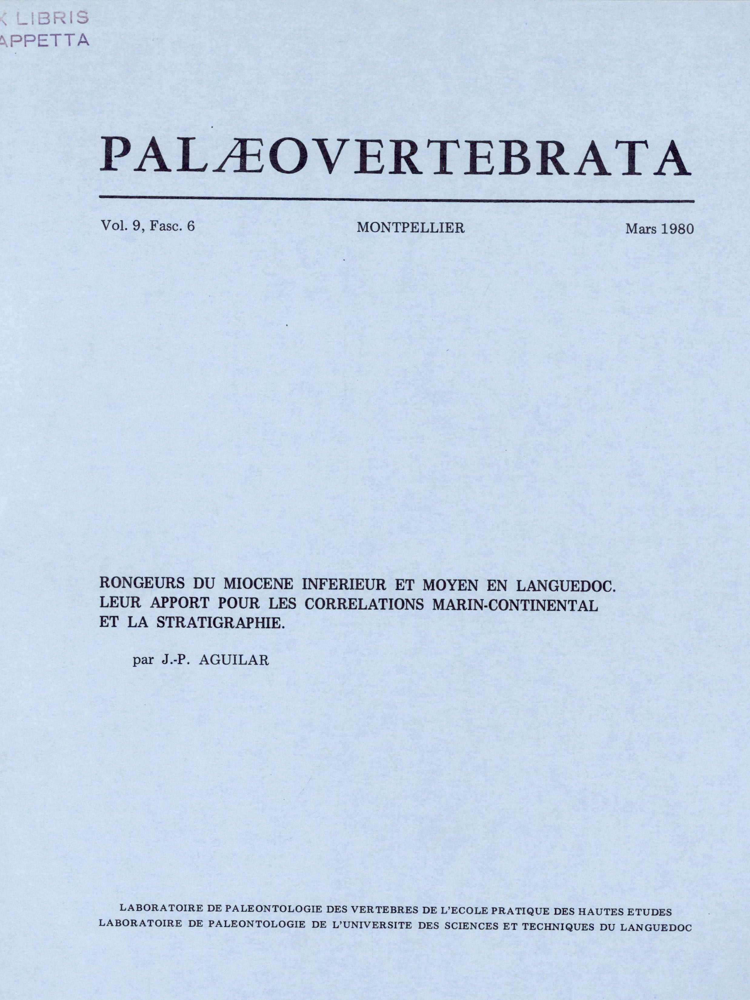 Archive data integration : Sylvain ADNET, Pierre-Olivier ANTOINE, Henri CAPPETTA, Lionel HAUTIER, Suzanne JIQUEL, Renaud LEBRUN, Fabrice LIHOREAU, Bernard MARENDAT, Laurent MARIVAUX, Maëva ORLIAC, Rodolphe TABUCE, Sandra UNAL and Monique VIANEY-LIAUD.