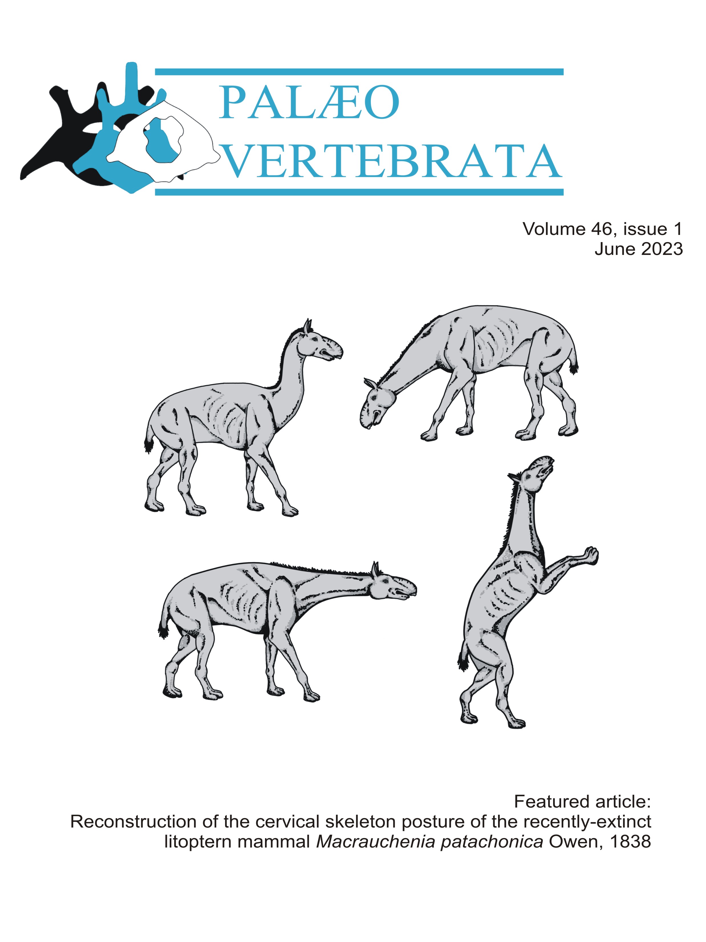 Reconstruction of the cervical skeleton posture of the recently-extinct litoptern mammal Macrauchenia patachonica Owen, 1838R. E. Blanco, Lara Yorio and Felipe MontenegroKeywords: biomechanics; cervical posture; functional anatomy; Litopterna; Macraucheniadoi: 10.18563/pv.46.1.e1 Abstract Macrauchenia patachonica was among the largest litopterns. It had a long neck with elongated cervical vertebrae, unique among endemic South American ungulates. We calculated the pattern of stress in the joints between the vertebral centra along the neck of the recently-extinct litoptern mammal M. patachonica for various hypothetical neck postures to determine which one is optimal. We also determined the zygapophyseal alignment positions for the neck, assuming a wide range of values for the thickness of the intervertebral discs. We concluded that a vertical posture is the one that best meets the requirements of nearly constant stress. This upright posture was probably a frequently adopted posture by M. patachonica while feeding or standing. It is also possible that occasionally it could adopt a gerenuk-like posture. In almost any other position, the standard deviations of stress values (SD) divided by mean stress (MS) have values between 0.4 and 0.5. Since it was a mixed feeder, M. patachonica probably used different postures to reach resources at different heights. However, an almost horizontal posture was required for the optimal articulation of the neck vertebrae. It probably represents the posture during fast locomotion, as suggested in a previous biomechanical study of locomotion. Article infos |