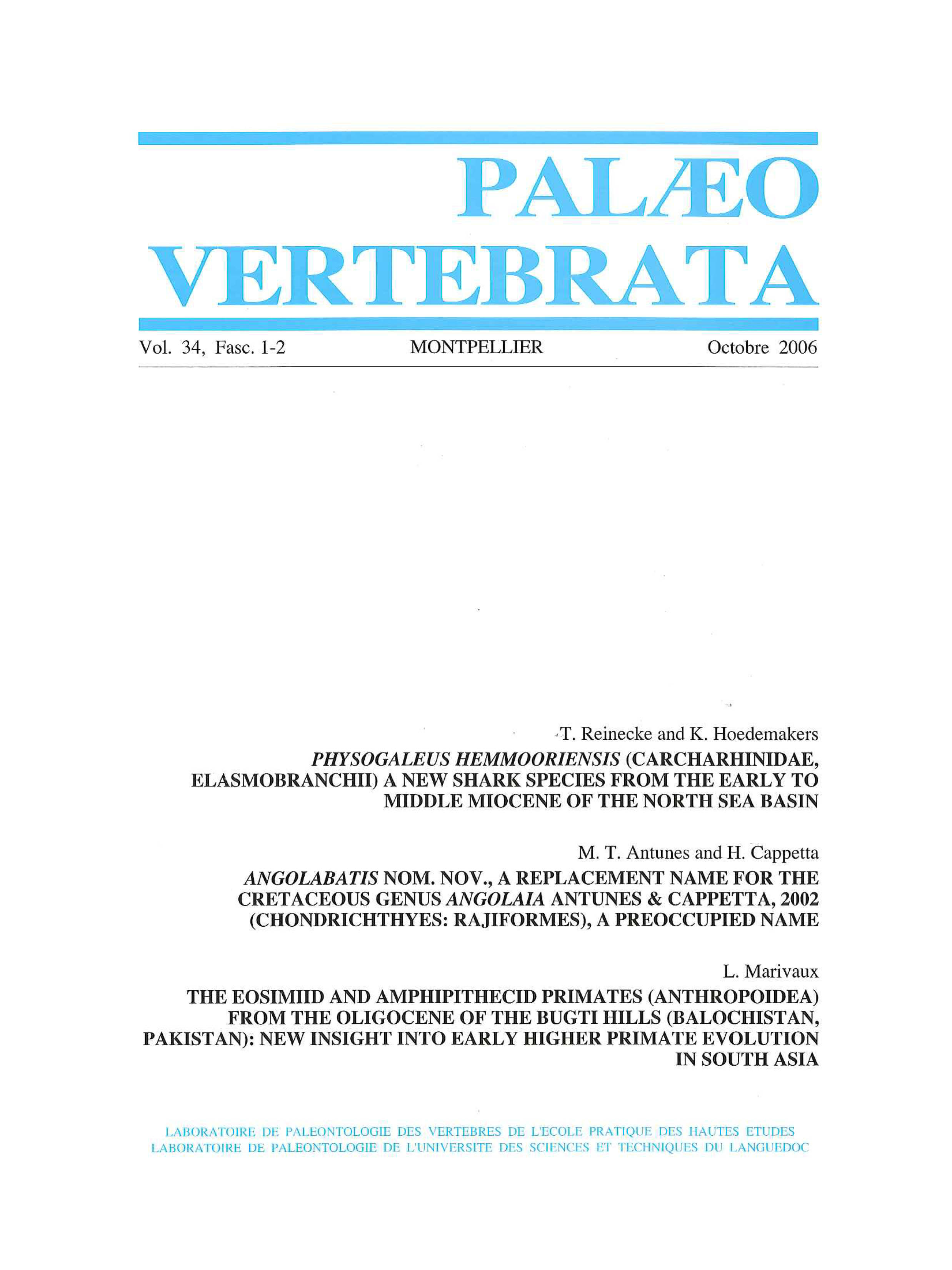 Archive data integration : Sylvain ADNET, Pierre-Olivier ANTOINE, Henri CAPPETTA, Lionel HAUTIER, Suzanne JIQUEL, Renaud LEBRUN, Fabrice LIHOREAU, Bernard MARENDAT, Laurent MARIVAUX, Maëva ORLIAC, Rodolphe TABUCE, Sandra UNAL and Monique VIANEY-LIAUD.