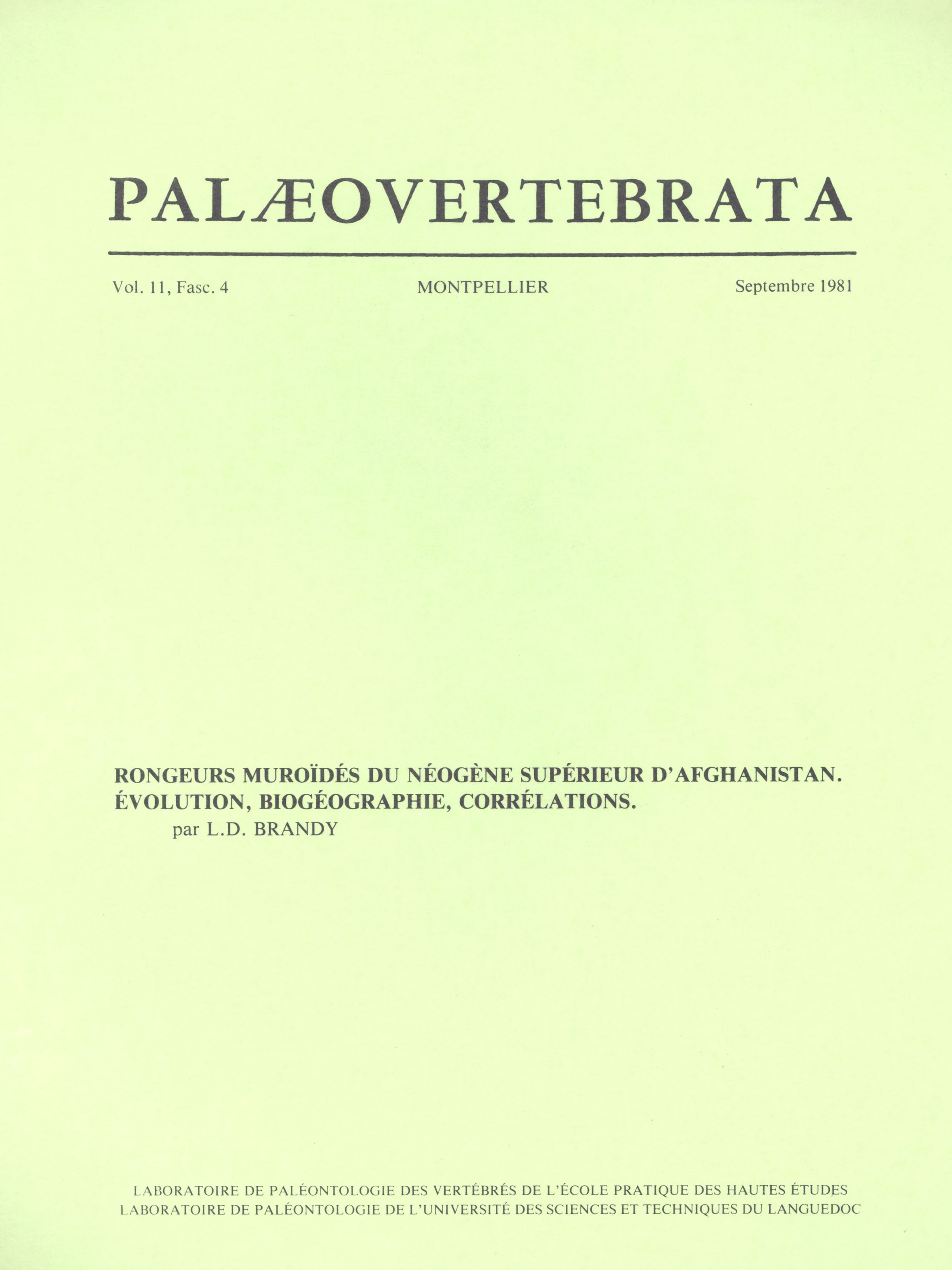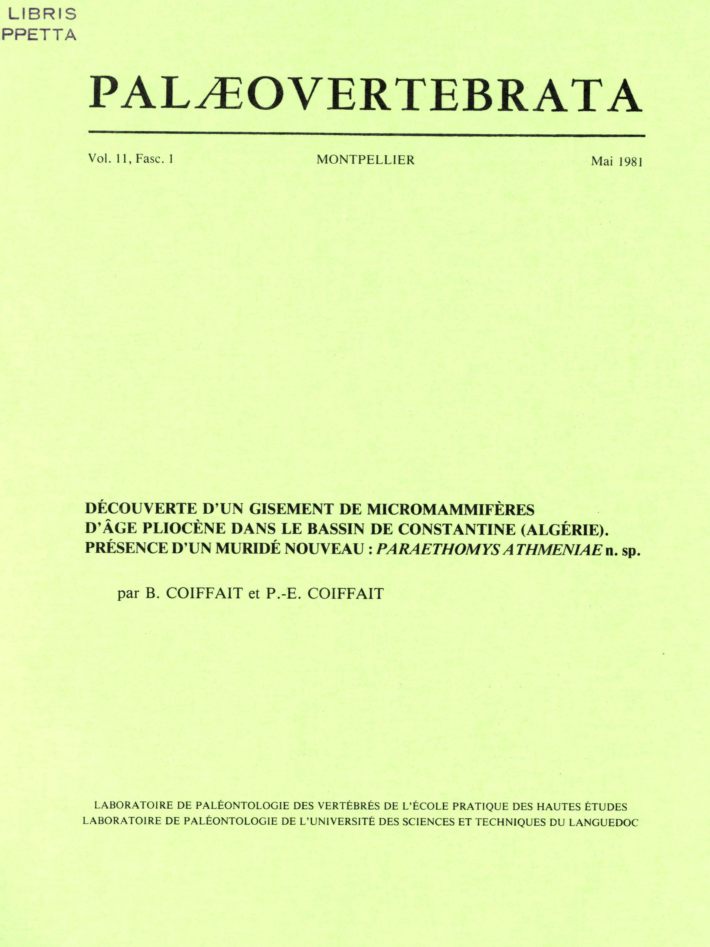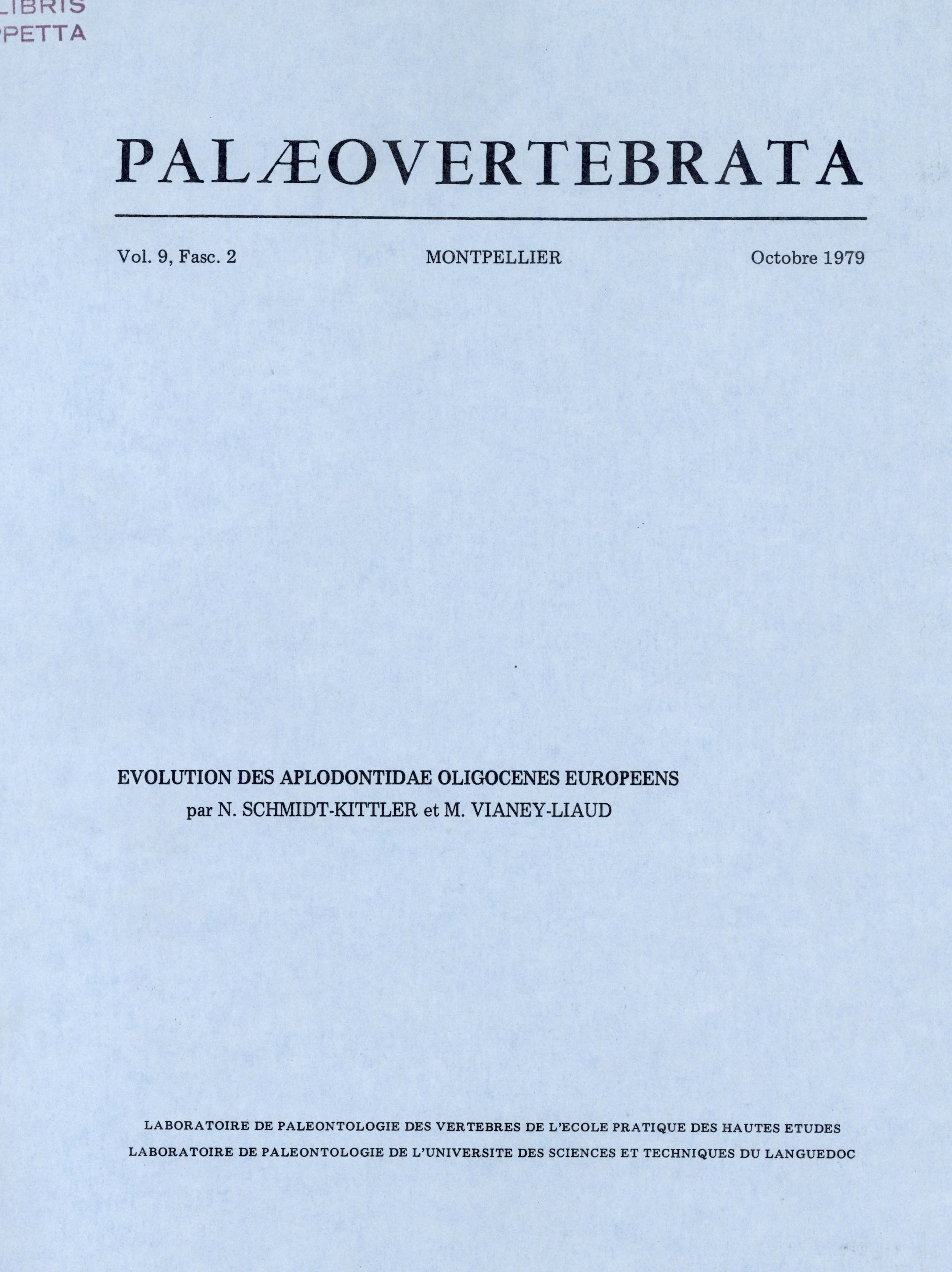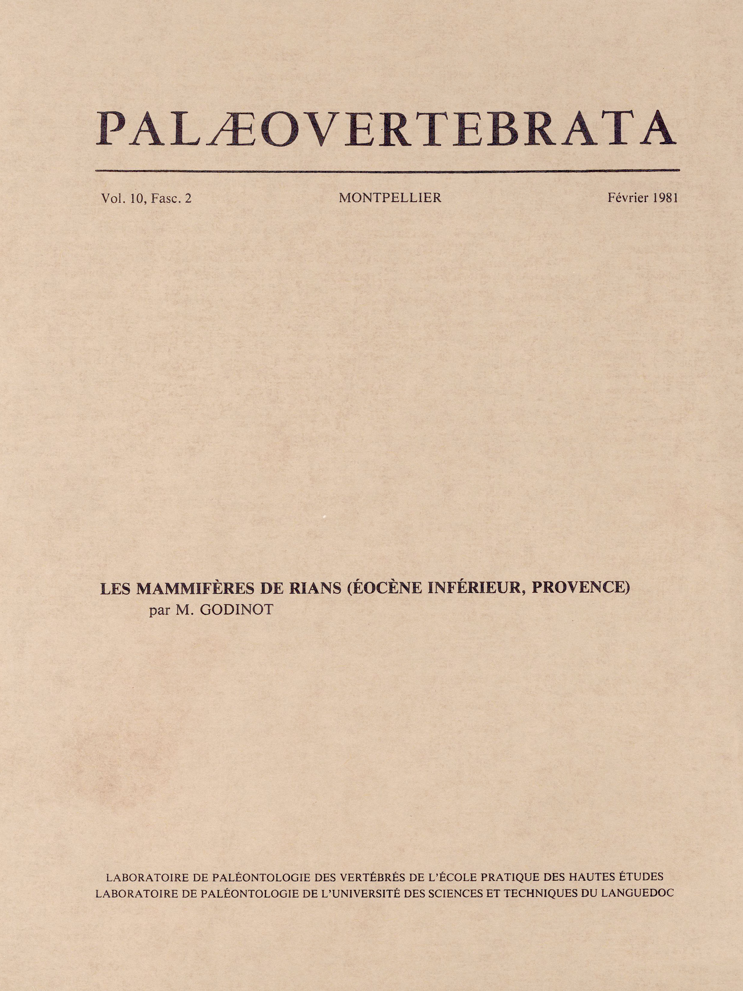 Archive data integration : Sylvain ADNET, Pierre-Olivier ANTOINE, Henri CAPPETTA, Lionel HAUTIER, Suzanne JIQUEL, Renaud LEBRUN, Fabrice LIHOREAU, Bernard MARENDAT, Laurent MARIVAUX, Maëva ORLIAC, Rodolphe TABUCE, Sandra UNAL and Monique VIANEY-LIAUD.